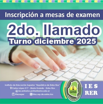Atenciones estudiantes del I.E.S. «Rca. de Entre Ríos»: Los días domingo 7 y lunes 8 de diciembre de 2025, estará abierta la inscripción online al segundo llamado de mesas de exámenes finales ordinarias del turno diciembre 2025. Las mesas se llevarán a cabo en forma presencial entre los días jueves 11 y miércoles 17 de diciembre de 2025. IMPORTANTE: Antes … [+]