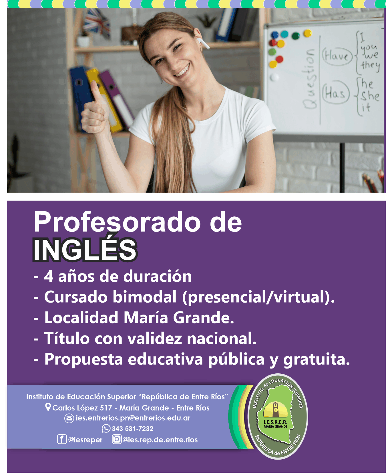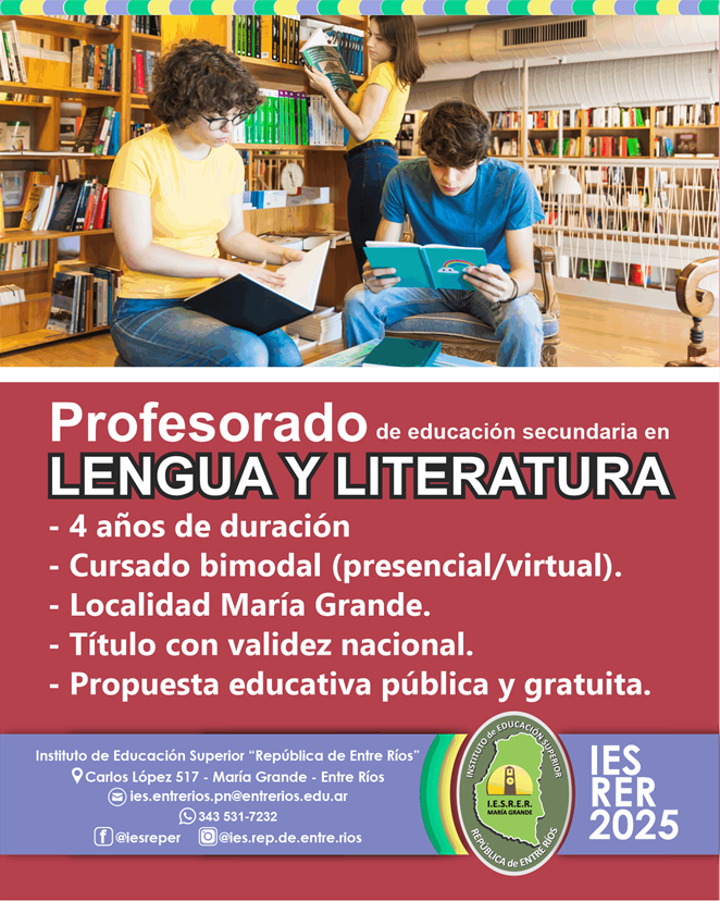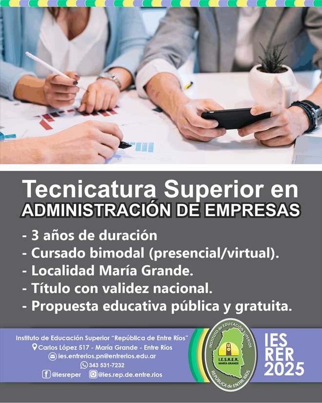 El Instituto de Educación Superior “República de Entre Ríos” (IES RER) informa que se encuentran abiertas las preinscripciones para las cohortes 2026.